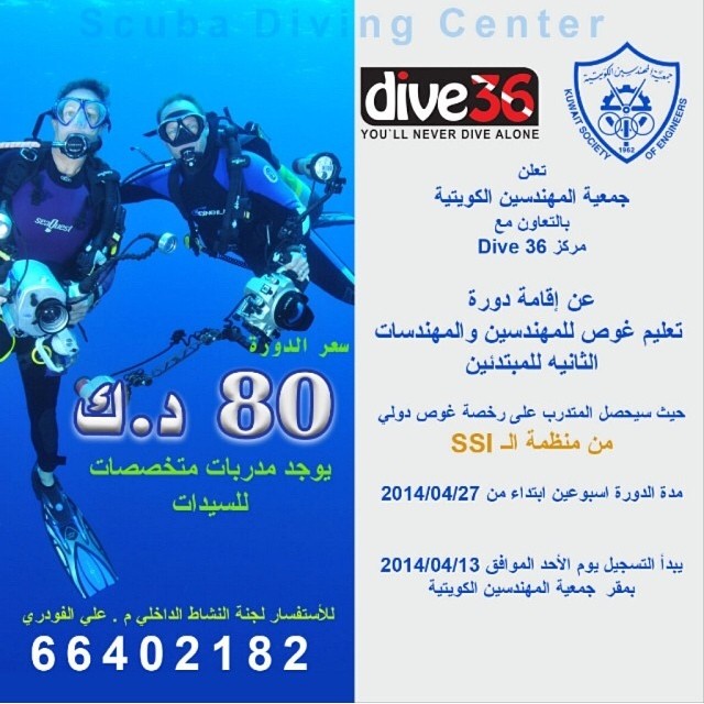 تعلن جمعية المهندسين الكويتية بالتعاون مع مركز Dive 36 21/04/2014 العروض و الخصومات Tags: جمعية المهندسين الكويتيةمركز التدريب Share 1