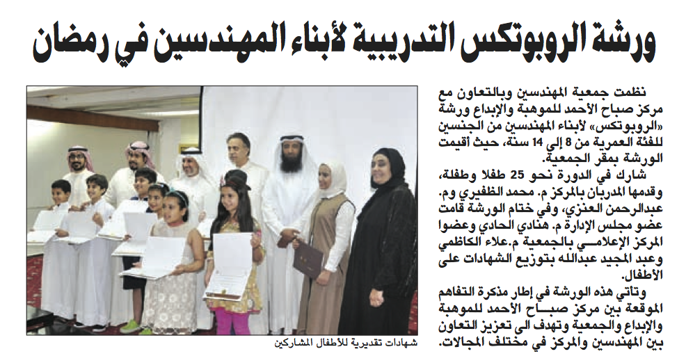 جريدة الأنباء 03/07/2016 أخبارنا بالصحف Tags: جريدة الأنباءجمعية المهندسين الكويتيةم. عبدالرحمن العنزيم. عبدالمجيد عبداللهم. علاء الكاظميم. محمد الظفيريم. هنادي الحايمركز صباح الأحمد للموهبة والإبداع Share 0