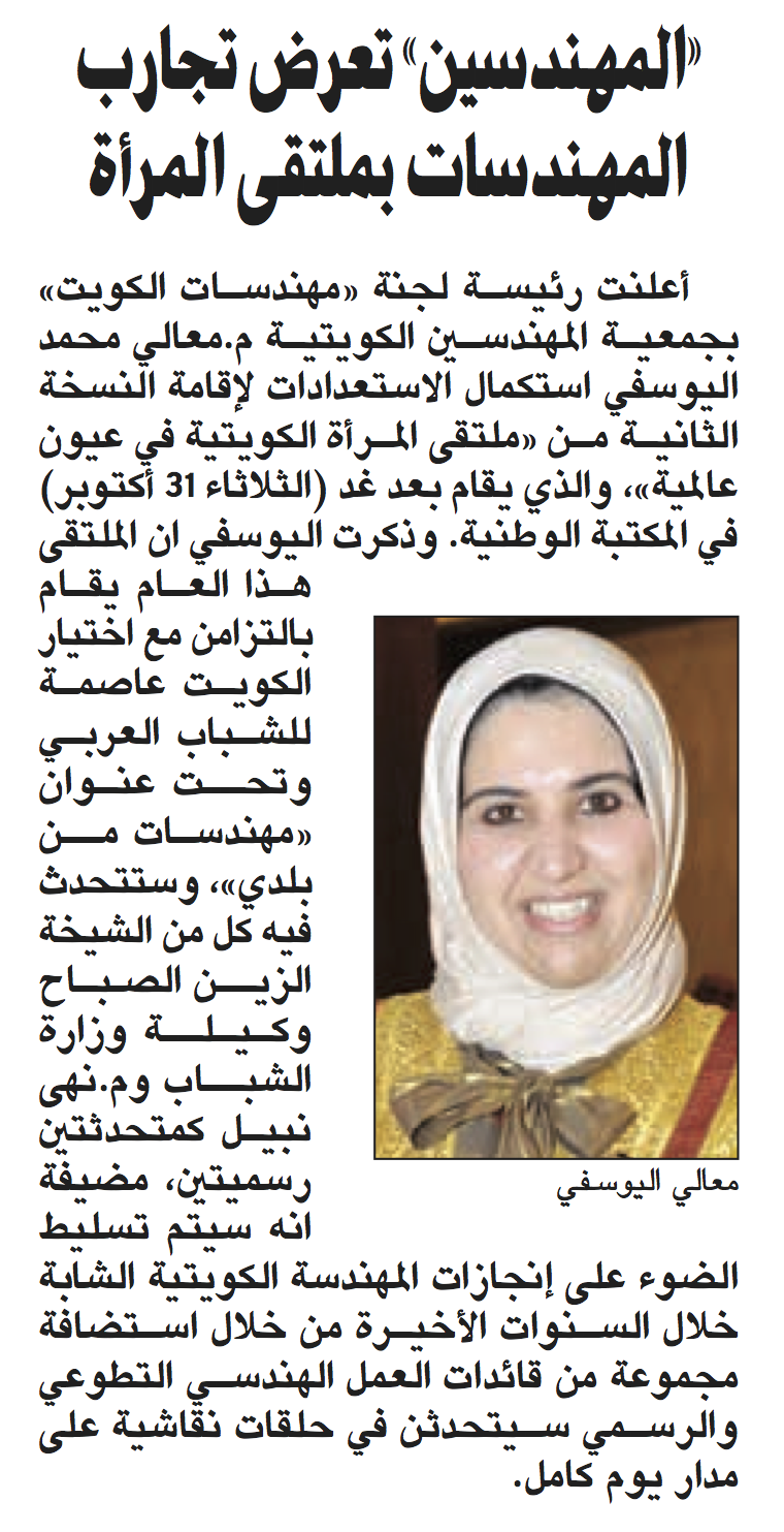 جريدة الأنباء 29/10/2017 أخبارنا بالصحف ريدة Tags: جريدة الأنباءجمعية المهندسين الكويتيةم. معالي اليوسفييوم المرأة العالمي Share 0