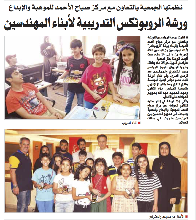 جريدة السياسة 03/07/2016 أخبارنا بالصحف Tags: جريدة السياسةجمعية المهندسين الكويتيةم. عبدالرحمن العنزيم. عبدالمجيد عبداللهم. علاء الكاظميم. محمد الظفيريم. هنادي الحايمركز صباح الأحمد للموهبة والإبداع Share 0