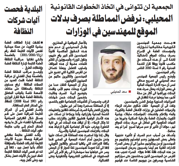 جريدة السياسة 11/01/2017 أخبارنا بالصحف Tags: جريدة السياسةجمعية المهندسين الكويتيةديوان الخدمة المدنيةم. سعد المحيلبي Share 0