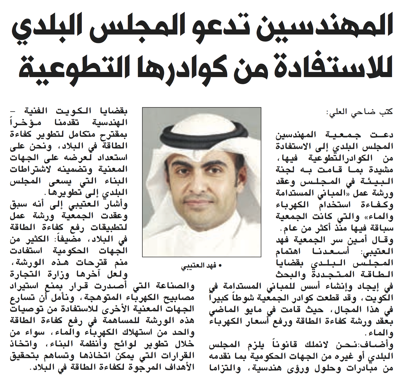 جريدة الشاهد 25/07/2017 أخبارنا بالصحف Tags: جريدة الشاهدجمعية المهندسين الكويتيةم. فهد العتيبي Share 0