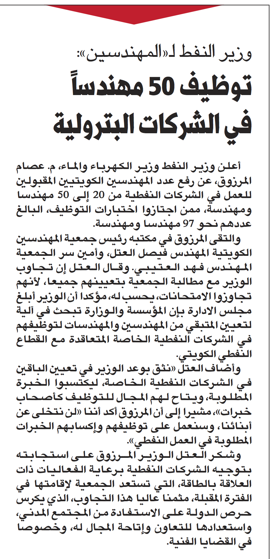 جريدة القبس 17/07/2017 أخبارنا بالصحف Tags: جريدة القبسجمعية المهندسين الكويتيةم. عصام المرزوقم. فهد العتيبيم. فيصل العتل Share 0