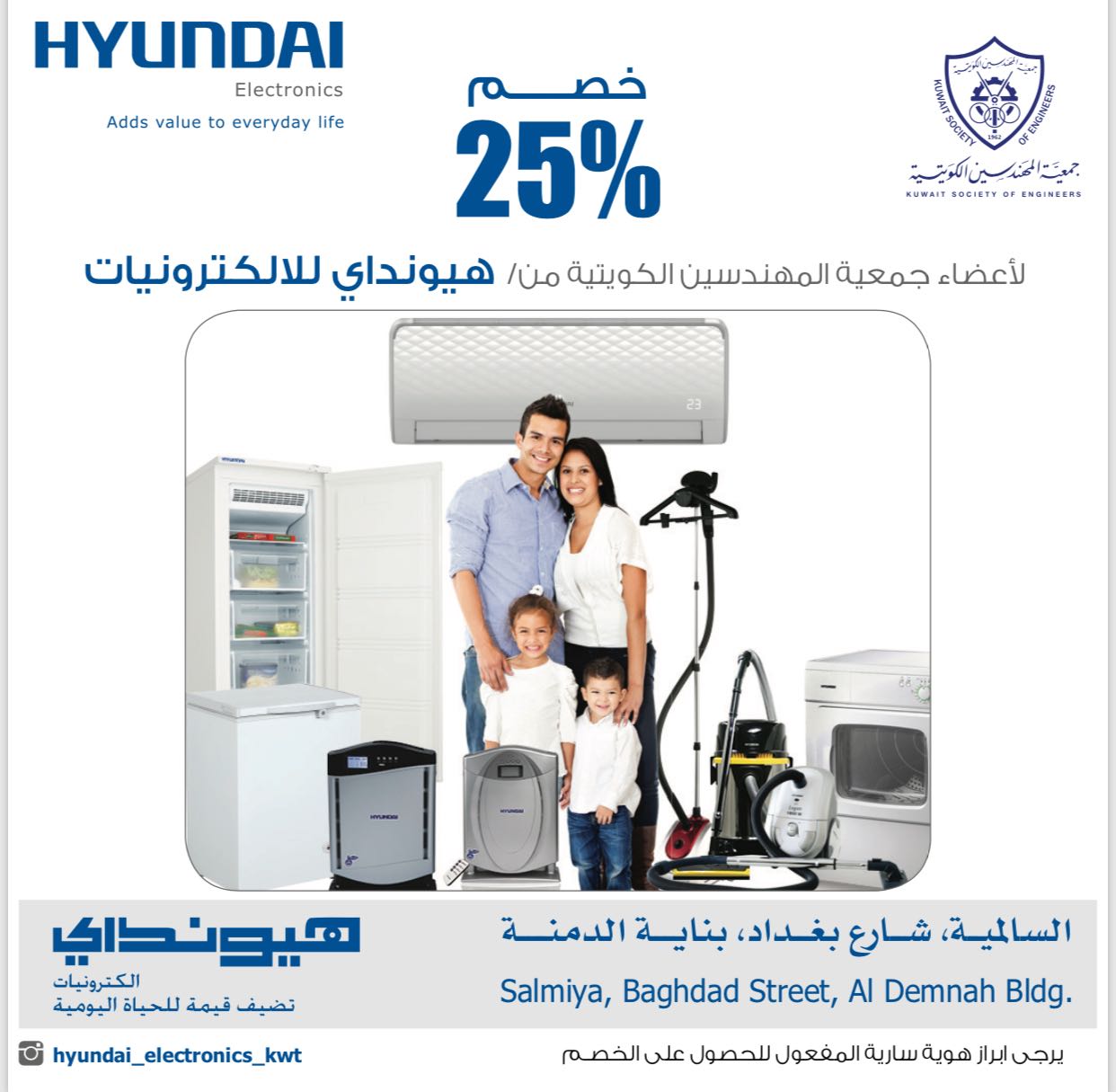 خصم خاص لأعضاء جمعية المهندسين الكويتية من هيونداي للالكترونيات 31/01/2018 الإعلانات الرئيسية, العروض و الخصومات Tags: جمعية المهندسين الكويتية Share 44