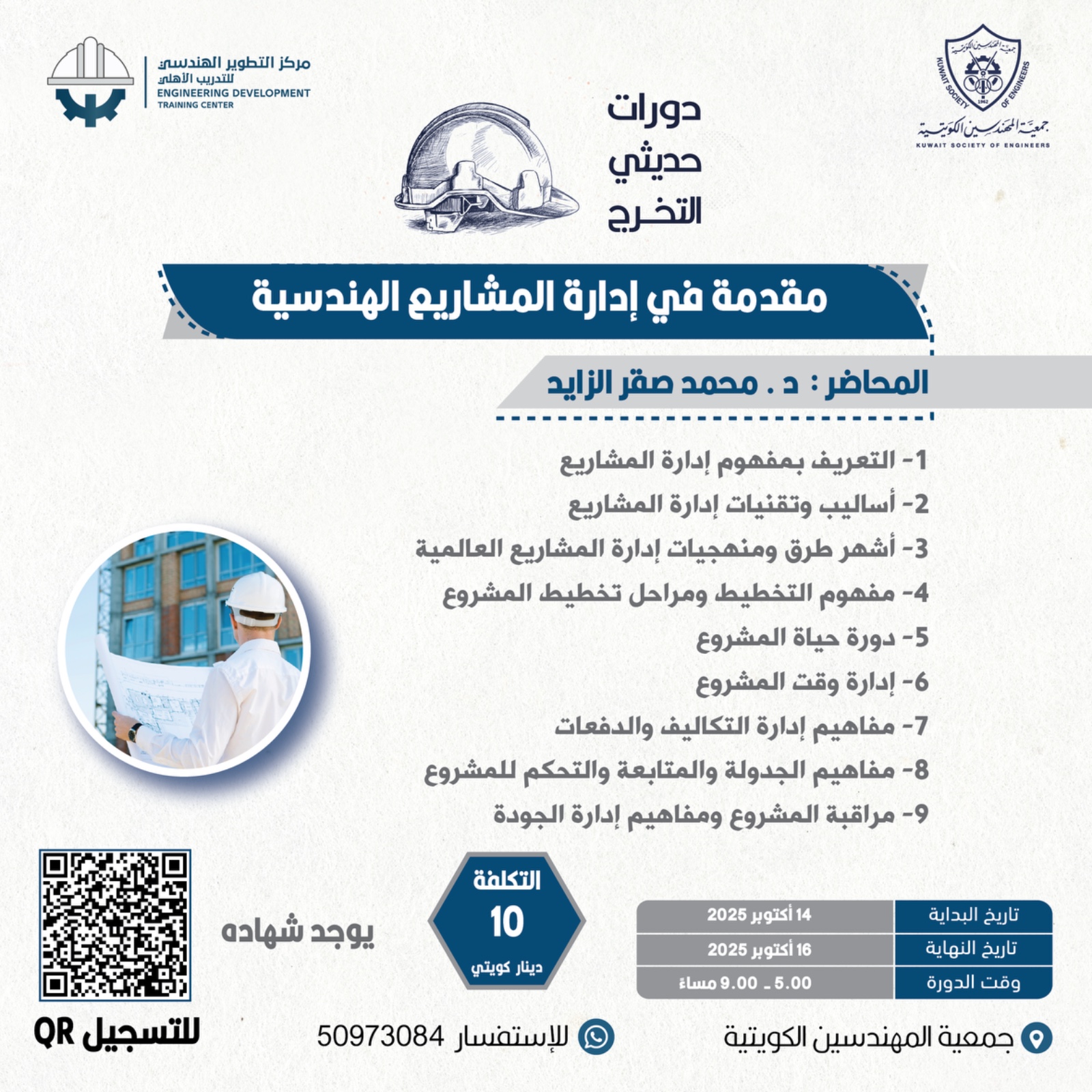 دورات حديثي التخرج – مقدمة في إدارة المشاريع الهندسية 02/10/2025 أحدث الفعاليات, البرامج التدريبية Share 0