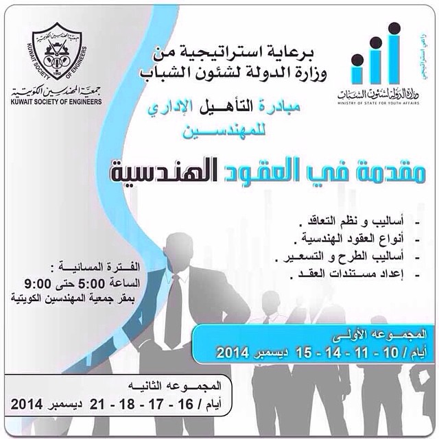 مبادرة التأهيل الإدارة للمهندسين مقدمة في العقود الهندسية 10/12/2014 الأحداث و الفعاليات, الإعلانات الرئيسية Tags: جمعية المهندسين الكويتية Share 0